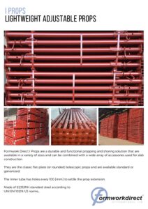 The props feature numbered pegging holes for easier height adjustment and quick connection and are fully compatible with all systems on the market.