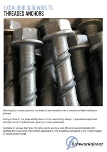 Suitable for formwork, scaffolding and many other applications. The Excalibur Screwbolt is the market leader in construction fixings.