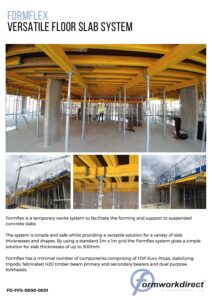 Formflex is a temporary works system to facilitate the forming and support to suspended concrete slabs.