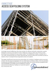 The system significantly improves site productivity with its ability to facilitate quick movement of labor. The stairways are equipped with non-slip treads to enhance safety, while the standard components and lightweight aluminum staircases make the erection process straightforward and manageable. Kwikstage Access Scaffolding combines practicality and efficiency, making it an essential asset for any construction site.