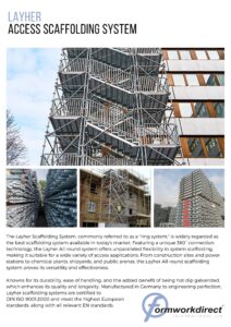 The Layher Scaffolding System, commonly referred to as a “ring system,” is widely regarded as the best scaffolding system available in today’s market. Featuring a unique 360° connection technology, the Layher All-round system offers unparalleled flexibility in system scaffolding, making it suitable for a wide variety of access applications. From construction sites and power stations to chemical plants, shipyards, and public arenas, the Layher All-round scaffolding system proves its versatility and effectiveness.