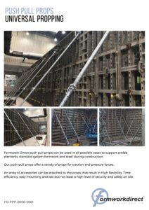 Formwork Direct galvanised push-pull props can be used in all possible cases to support prefab elements, standard system formwork and steel during construction.