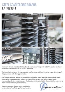 Formwork Direct’s Steel Scaffolding Boards are made entirely with S235JRH graded steel and produced in accordance to EN 10210-1 standards.