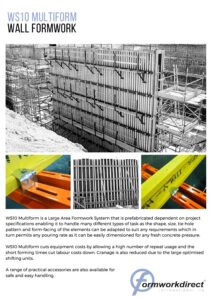 WS10 Multiform Wall Formwork is a system that is prefabricated dependent on project specifications enabling it to handle many different types of task as the shape, size, tie-hole pattern and form-facing of the elements can be adapted to suit any requirements which in turn permits any pouring rate as it can be easily dimensioned for any fresh concrete pressure.